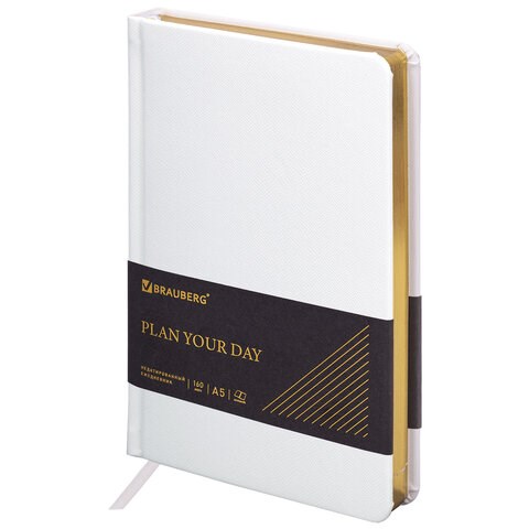 Ежедневник недатированный А5 138х213 мм, BRAUBERG "Iguana", под кожу, 160 л., белый, 114458