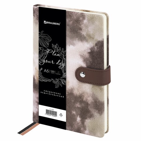Недатированный ежедневник BRAUBERG в твёрдой обложке с эффектом каменной крошки и застёжкой — яркое, стильное и компактное решение для эффективного планирования и создания имиджа пунктуального человека.