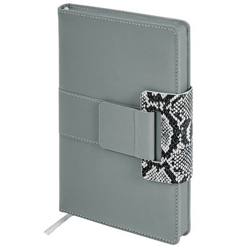 Ежедневник недатированный А5 138х213 мм, BRAUBERG "Safari", под кожу, магнит, 160 л., Snake, серый, 116594