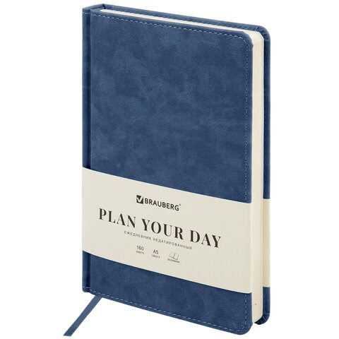 Ежедневник недатированный А5 138х213 мм BRAUBERG "Status", под кожу, 160 л., темно-синий, 113362