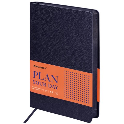 Ежедневник недатированный А5 (138х213 мм) BRAUBERG "Stylish", кожзам, гибкий, 160 л., темно-синий, 126223