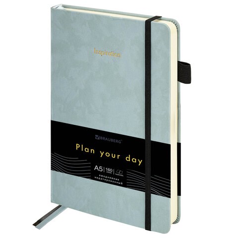 Ежедневник недатированный А5 138x213мм BRAUBERG Velvet, резинка, держатель, 160л, серо-голубой, 116245