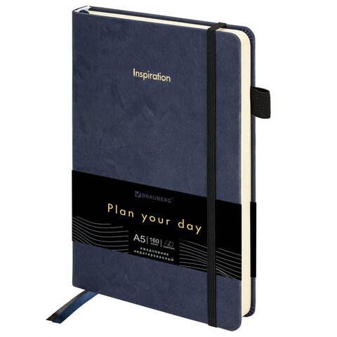 Ежедневник недатированный А5 138x213мм BRAUBERG Velvet, резинка, держатель, 160л, синий, 116243