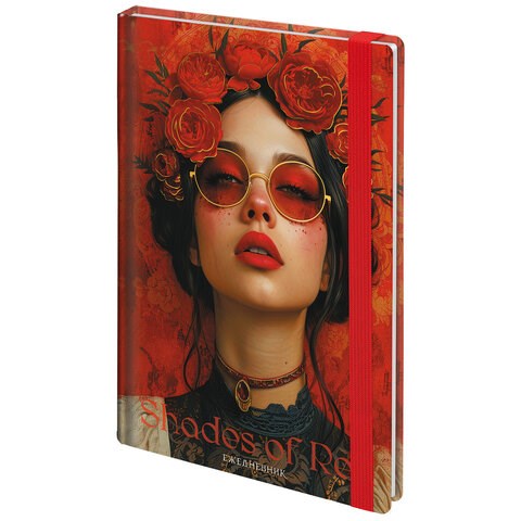 Ежедневник недатированный с резинкой А5 145х203 мм, BRAUBERG, твердый, фольга, 128 л., "Red vibe", 116298