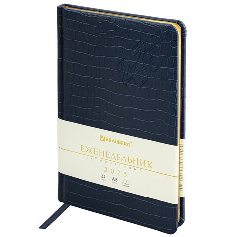 Еженедельник датированный 2025, А5, 145х215 мм, BRAUBERG "Comodo", под кожу, темно-синий, 115957