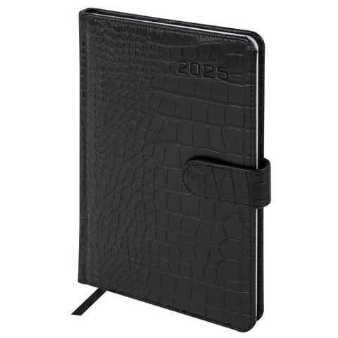 Еженедельник датированный 2025, А5, 145х215 мм, BRAUBERG "Party", под кожу, черный, 115970
