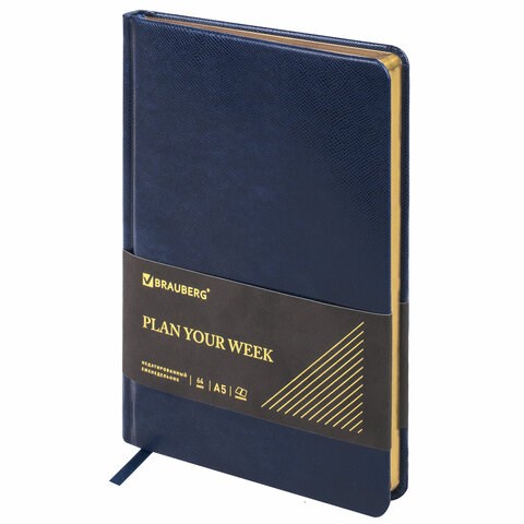 Еженедельник недатированный А5, 145х215 мм, BRAUBERG "Iguana", под кожу, 64 л., синий, 114476