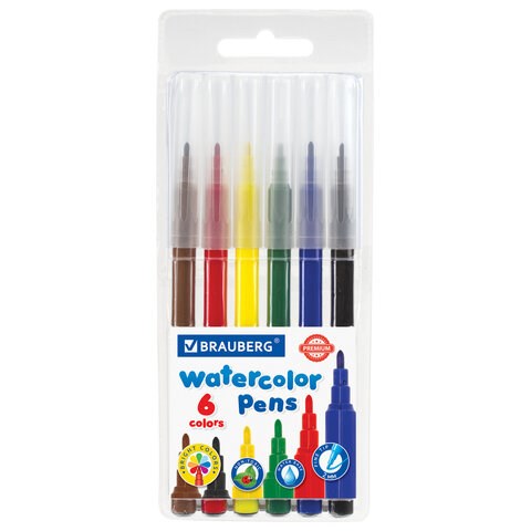 Набор фломастеров BRAUBERG "PREMIUM" с насыщенными, яркими цветами в количестве 6 штук. Чернила на водной основе практически не имеют запаха, не токсичны и легко смываются с большинства материалов и тканей.