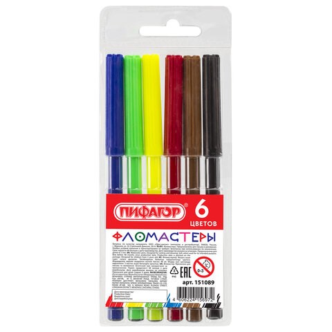 Фломастеры ПИФАГОР, 6 цветов, вентилируемый колпачок, 151089