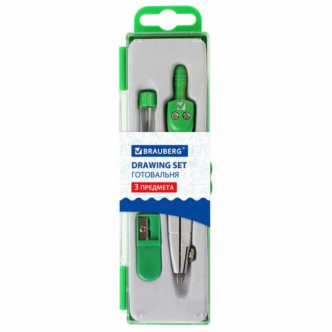 Готовальня BRAUBERG "Klasse", 3 предмета: циркуль 115 мм, грифель, точилка, пенал с подвесом, 210328