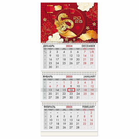 Календарь квартальный на 2025 г., 3 блока, 3 гребня, с бегунком, мелованная бумага, BRAUBERG, "Символ года восток", 116141