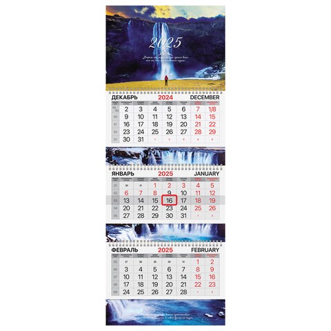 Календарь квартальный на 2025 г., 3 блока, 3 гребня, с бегунком, мелованная бумага, EXTRA, BRAUBERG, "Мотивация", 116153