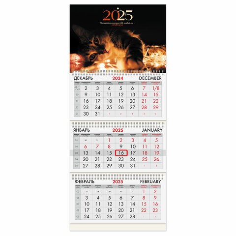 Календарь квартальный на 2025 г., 3 блока, 3 гребня, с бегунком, офсет, BRAUBERG, "Милый котик", 116099