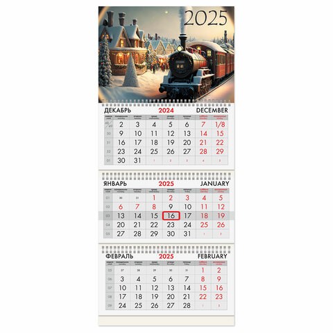 Календарь квартальный на 2025 г., 3 блока, 3 гребня, с бегунком, офсет, BRAUBERG, "Паровозик", 116107