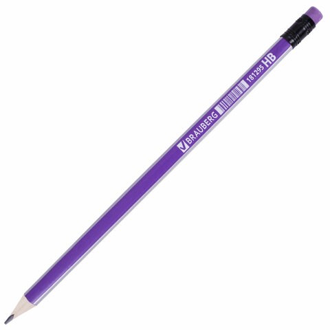 Карандаш чернографитный BRAUBERG, 1 шт., "Lines", HB, трехгранный, с ластиком, фиолетовый/серебристый, 181295