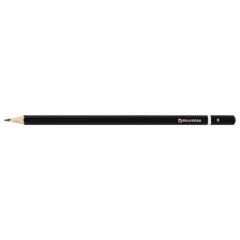 Карандаш чернографитный BRAUBERG, 1 шт., "Touch line", В, корпус черный, заточенный, 180622