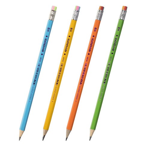 Карандаш чернографитный ЮНЛАНДИЯ, 1 шт., "Неончики", НВ, корпус ассорти, с резинкой, 181589