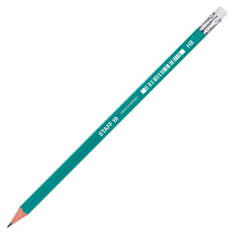Карандаш чернографитный с ластиком STAFF EVERYDAY BLP-GRN, 1 шт., НВ, пластик., корпус зеленый, 181939