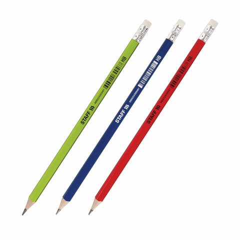 Карандаш чернографитный STAFF "Basic" BLP-744, 1 шт., НВ, с ластиком, пластик, корпус ассорти, 181744