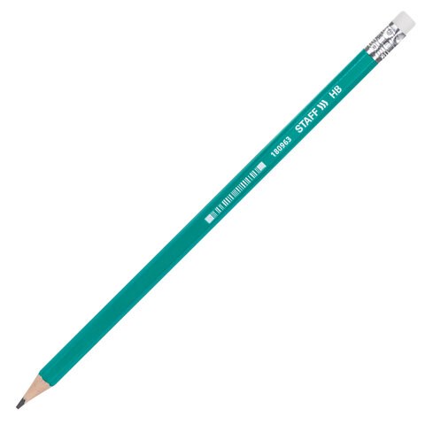 Карандаш чернографитный STAFF "EVERYDAY" BLP-963, 1 шт., НВ, с ластиком, пластиковый, зеленый корпус, 180963