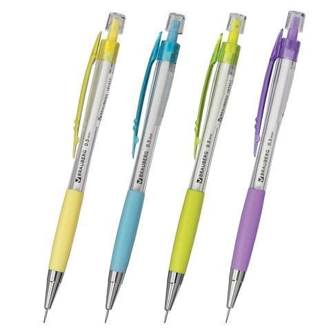 Карандаш механический 0,5 мм, BRAUBERG "Elegant", резиновый грип, корпус ассорти, 181417