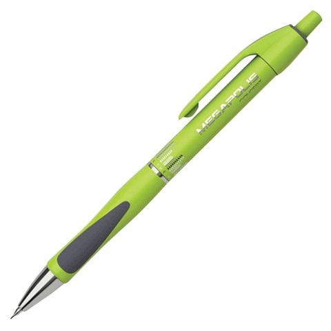 Механический карандаш с металлическим наконечником и убирающейся цангой. Карандаш имеет круглый неоновый корпус с эргономичной грип-зоной, оснащенной двумя резиновыми вставками.