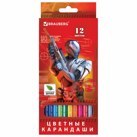 Карандаши цветные BRAUBERG "Star Patrol", 12 цветов, шестигранные, грифель 3 мм, натуральное дерево, 180532