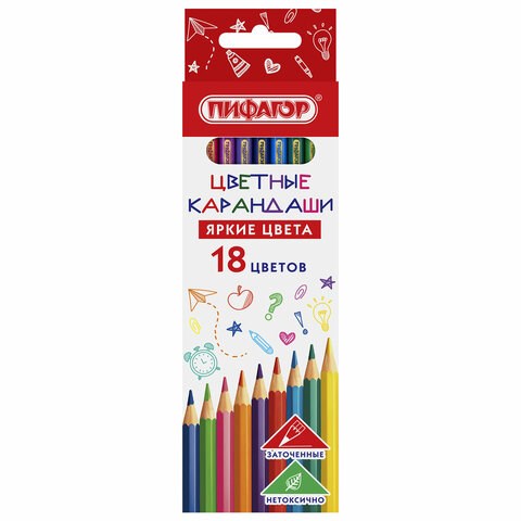 Карандаши цветные ПИФАГОР ЭКО "КЛАССИК", 18 цветов, шестигранные, 182049