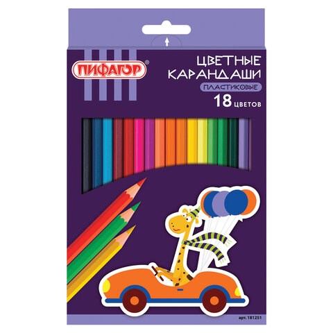 Карандаши цветные ПИФАГОР "ЖИРАФ", 18 цветов, шестигранные, 181251