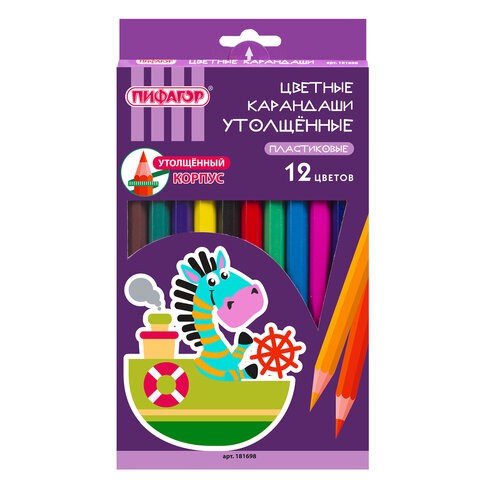 Цветные утолщенные карандаши ПИФАГОР предназначены для детского творчества, а коробка с забавным оформлением порадует как детей дошкольного и младшего школьного возраста, так и взрослых.