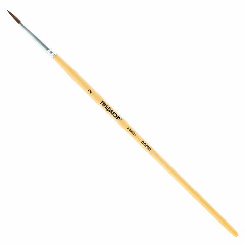 Кисть ПИФАГОР, ПОНИ, круглая, № 2, деревянная лакированная ручка, с колпачком, 200831