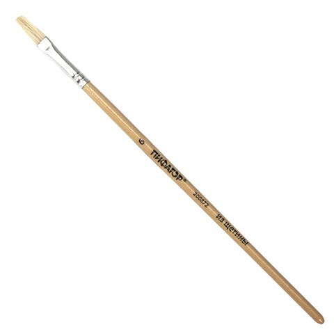 Кисть ПИФАГОР, ЩЕТИНА, плоская, № 6, деревянная лакированная ручка, пакет с подвесом, 200872