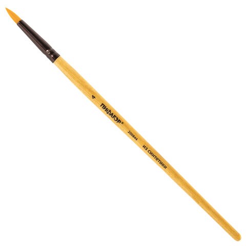 Кисть ПИФАГОР, СИНТЕТИКА, круглая, № 4, деревянная лакированная ручка, с колпачком, 200844