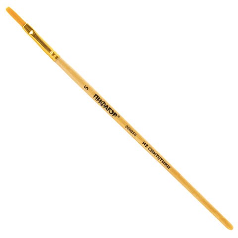 Кисть ПИФАГОР, СИНТЕТИКА, плоская, № 5, деревянная лакированная ручка, с колпачком, 200858