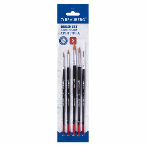 Кисти BRAUBERG, набор 5 шт. (синтетика, круглые № 1, 2, 3, 4, 5), блистер, 200218