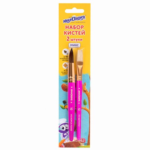 Набор из двух кистей разного размера ЮНЛАНДИЯ позволяет начинающим художникам решать любые творческие задачи в детском саду, школе и дома.