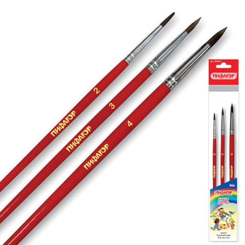 Набор из трех кистей разного размера ПИФАГОР позволяет начинающим художникам решать любые творческие задачи в детском саду, школе и дома.
