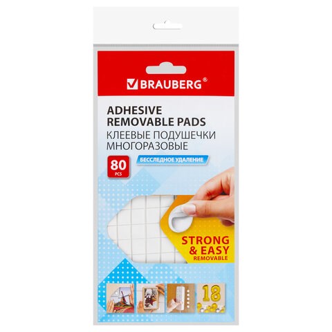 Уникальные клеевые многоразовые подушечки BRAUBERG предназначены для быстрого и четкого крепления бумаги, постеров и других легких предметов практически к большинству поверхностей (металл, стекло, пластик, текстиль, дерево и т.п.).