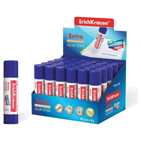 Клей-карандаш Extra c новой суперсильной формулой на PVP-основе с экономичным расходом, максимально быстрым и надежным склеиванием. Легко смывается водой. Не токсичен. Не содержит растворителя. Морозостоек. Подходит для бумаги, картона и ткани.