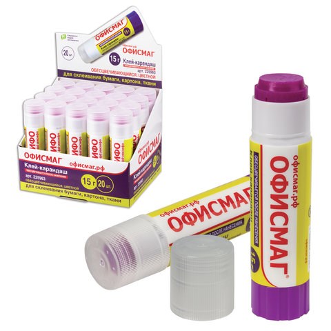 Обесцвечивающийся клей-карандаш ОФИСМАГ идеально подходит для аккуратного нанесения на склеиваемую поверхность. Идеально подходит для офиса, дома и школы.