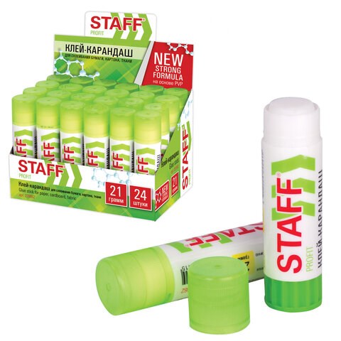 Новая формула клея STAFF Profit гарантирует надежное склеивание бумаги, картона и фотобумаги. После нанесения высыхает без образования пятен. Безопасен для здоровья.