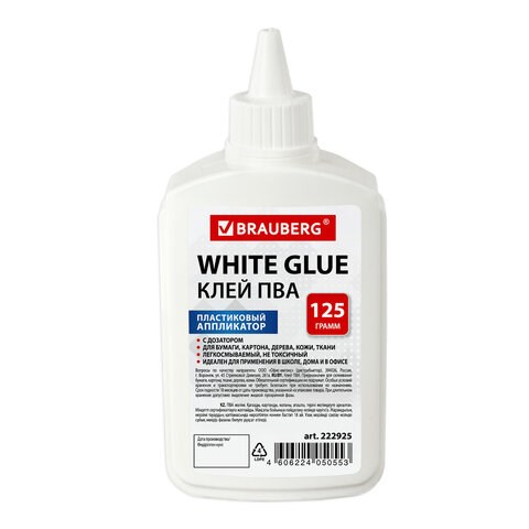Клей ПВА BRAUBERG (бумага, картон, дерево), 125 г, 222925