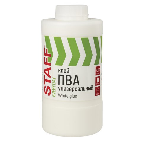 Клей ПВА универсальный STAFF применяется для склеивания изделий из бумаги, картона, тканей, виниловых и бумажных обоев. Может использоваться в качестве модификатора для улучшения технологических и адгезионных свойств.