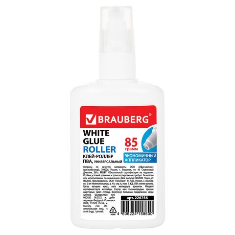 Клей-роллер ПВА BRAUBERG (картон, бумага, дерево, ткань, керамика), 85 г, 226756