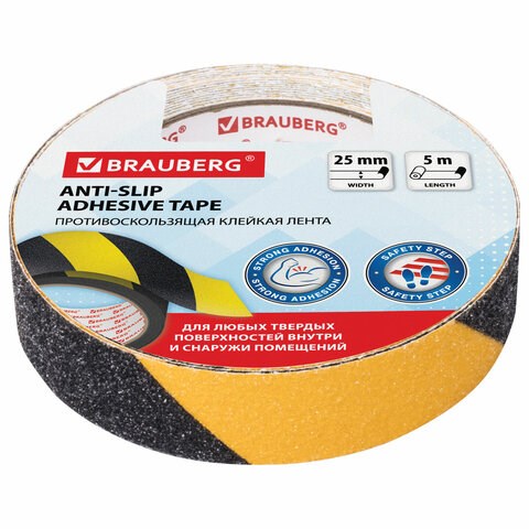 Клейкая ПРОТИВОСКОЛЬЗЯЩАЯ зернистая лента BRAUBERG предназначена для предотвращения ситуаций, связанных с несчастными случаями из-за проскальзывания на любых твердых поверхностях внутри и снаружи помещений.