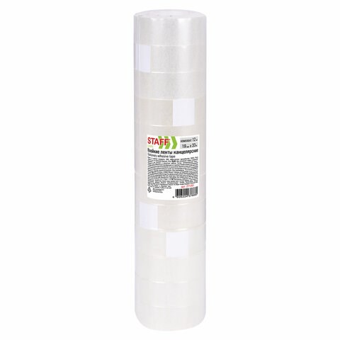 Клейкие ленты 19 мм х 33 м канцелярские STAFF CLASSIC, КОМПЛЕКТ 12 шт., прозрачные, 271261