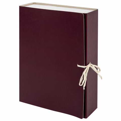 Короб архивный (240х330 мм), 80 мм, 2 завязки, бумвинил, до 700 листов, бордовый, STAFF, 126900