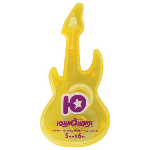 Корректирующая лента ЮНЛАНДИЯ "ГИТАРА", 5 мм х 6 м, корпус желтый, блистер, 227798