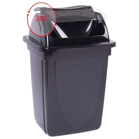 Корзина для бумаг, 12 л, цельная, с вращающейся крышкой, черная, КР90
