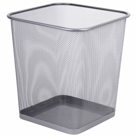 Корзина для бумаг квадратная 17 литров, BRAUBERG "Germanium", металл, серебро, 237976
